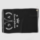 These golf towels make the perfect gift for an avid golfer. Personalized with name and initials, the design also includes golf clubs, balls, a crown, and a laurel wreath. The design is made in all black and white.