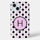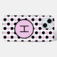 Design features Lavender circle in the middle of the case with monogram ( create as template) with black border. The Big Circle is surrounded by black and lavender dots of the same size to make more attractive look.