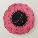 Monogram Leaf Pattern Pink Round Pillow