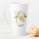 Drink with style with our Monogram Lemon Fruits White Flowers Tree Branch Latte Mug. Featuring watercolor illustration of citrus lemon tree branch, suitable as gift for nature lovers.