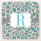 Monogram Leopard Aqua Grey White Paper Coaster