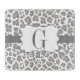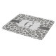 Chic, modern, pretty wild animal big cats leopard print glass cutting board in white and grey featuring a grey stripe and white edged with grey banner you can customize with your monogram initial!