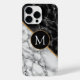 Monogram Letter Black White Marble Personalized iPhone Case