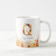 Elegant watercolor leaves frame the bottom of this mug while the letter Q is a collage of festive fall element of red orange and yellow leaves, Personalize with a name to make it uniquely yours.
