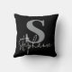 Monogram Lettered Script Silver Black Throw Pillow
