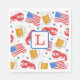 These preppy monogram patriotic party napkins add a patriotic touch to your party. Personalize with an initial. The lobster, beer, flag and star patriotic pattern can be found on many items in my shop, PageCreativeDesigns.