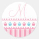 Monogram M Cupcakes Pinstripes Pink Blue Sticker