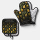 Monogram Made with Love Avocado Pattern Black Oven Mitt & Pot Holder Set
