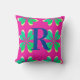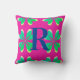 Monogram Magenta Emerald Green Retro Flower Throw Pillow