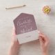 All in one wedding invitation featuring elegant signature script name and monogram initials on a mauve background. The invitation includes a perforated RSVP card that can be individually addressed or left blank for you to handwrite your guest's address details. Designed by Thisisnotme©