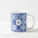 Monogram Mediterranean Blue White Tile Watercolor Coffee Mug