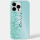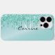 Monogram Metallic Aqua Blue Glitter Drip Android + Case-Mate iPhone Case