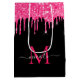 Monogram Metallic Hot Pink Dripping Glitter Black Medium Gift Bag
