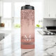 Custom monogram metallic faux foil gradient with simulated dripping glitter graphic therman hot and cold liquid travel tumbler. Easily personalize this item with your name and last initial using zazzle's quick and simple to use personalization tool.