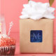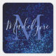 On this dazzling sticker are shimmering shades of blue confetti on a royal blue dark backdrop where in the center you can customize it with a letter, name or logo. Chic dreamy blue confetti theme.