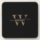 Monogram Minimal Elegant Black Gold Script Name Coaster