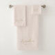 Monogram Minimalist Blush Pink Script Signature Bath Towel Set