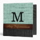 Monogram Mint & Black Burlap Rustic Jute Binder