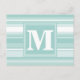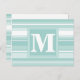 Monogram mint green stripes postcard