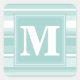 Monogram mint green stripes square sticker