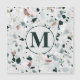 This elegant design features a pristine white marble background, creating a striking visual appeal. The modern and abstract aesthetic, crafted by Looly Elzayat, showcases a unique terrazzo pattern in white and green, embodying minimalism while offering a personalized touch. Ideal for print-on-demand applications, this artwork allows you to design your own products. you can personalize your own monogram by clicking "Edit Design button.