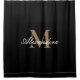 Easy to personalize templates | Monogram Modern Black White Gold Elegant Script Curtain. design by Sandy Closs