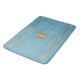 Trendy luxury exclusive looking monogrammed bathroom bath mat featuring a faux gold copper metallic glitter square and stripes over a stylish classy blue background. Personalize it with name and monogram initial. It can be an elegant personalized personal or family gift for a birthday, housewarming, retirement, holiday, anniversary, or any other occasion.
