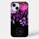 Monogram Modern Feminine Bright Pink Floral Black Case-Mate iPhone Case