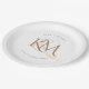 Monogram Modern Gold Script Elegant White Wedding Paper Plate