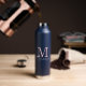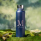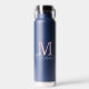 Monogram Modern Minimalist Navy Blue Water Bottle. Personalize with your custom monogram initial and name.