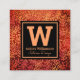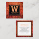 A sparkly gold and copper foil ombre autumn leaf damask pattern on a rich burnt orange and deep red textured background adorns this stunning, modern, trendy custom square business card. Personalize with your initial, full name, and business on the front. Fill in the back side with your phone numbers, address, email, website, and social media accounts. Makes a chic, smart, and stylish statement wherever you go.