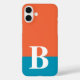 Monogram Monogrammed Simple Modern Orange Blue Phone 16 Plus Case features your custom personalized initial on an orange and blue colorblock background. Personalize by editing the text in the text box provided. Font and font colour can be changed by personalizing. Perfect as a gift for him or her for birthday, Christmas, Father's Day, Mother's Day, holidays and more. Created by Evco Studio www.zazzle.com/store/evcostudio