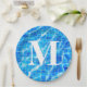 This modern design features a sparkling blue swimming pool tiled background with your personalized monogram in modern typography #monogram #monogrammed #initial #personalized #party #partysupplies #tableware #paperplates #plates #partyplates #swimming