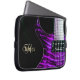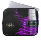 Monogram Music Purple Guitar Laptop Sleeve. Personalized musical themed sleeve for your favourite guitar player, musician or music lover. Fill in your name and initial at the prompt to personalize and customize anyway you like.