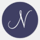 Monogram N, White on Navy Blue, Classic Round Sticker