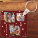 Monogram Name 3 Photo Collage Trendy Modern Keychain features a photo collage of three of your favourite photos with your personalized name and monogram in elegant white script on a burgundy background. Personalize by editing the text in the text boxes provided. Perfect for birthday, Christmas, Mother's Day, Father's Day, sister, cousins, best friends and more. PHOTO TIP: centre your photos before uploading to Zazzle. Designed by ©Evco Studio www.zazzle.com/store/evcostudio