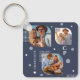 Monogram Name 3 Photo Collage Trendy Modern Keychain features a photo collage of three of your favourite photos with your personalized name and monogram in elegant white script on a blue background. Personalize by editing the text in the text boxes provided. Perfect for birthday, Christmas, Mother's Day, Father's Day, sister, cousins, best friends and more. PHOTO TIP: centre your photos before uploading to Zazzle. Designed by ©Evco Studio www.zazzle.com/store/evcostudio