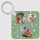 Monogram Name 3 Photo Collage Trendy Modern Keychain features a photo collage of three of your favourite photos with your personalized name and monogram in elegant white script on a green background. Personalize by editing the text in the text boxes provided. Perfect for birthday, Christmas, Mother's Day, Father's Day, sister, cousins, best friends and more. PHOTO TIP: centre your photos before uploading to Zazzle. Designed by ©Evco Studio www.zazzle.com/store/evcostudio