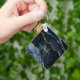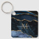 Monogram Name Agate Navy Blue Gold Marble Keychain