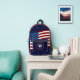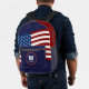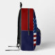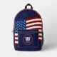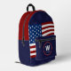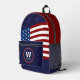 This design features American flag and map pattern with red blue and white stripes. Custom American flag monogrammed name backpack in high quality. This design can be easily edited. If you need help with the customization please message me via Zazzle.