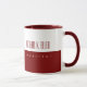 Modern half dark red and half white coffee mug personalized with your own name and profession (architect).