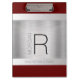 Monogram & Name Black Grey Deep Red Brushed Silver Clipboard