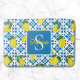 Monogram Name Blue French Tile Lemon Pattern Bath Mat