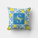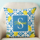Monogram Name Blue French Tile Lemon Pattern Throw Pillow