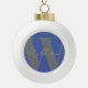 Monogram name blue gray stylish modern gift design ceramic ball christmas ornament