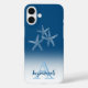 The design features a blue ombre case and the custom name and initial letter monogram sit in the lower white area. The three white starfish sit up top in the template text. Personalize the text, remove one or all the text or click customize to select a font style, size, and colour you prefer.