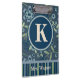 Monogram Name Blue Stripe Floral Teacher Clipboard