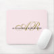 Elegant refined feminine chic personalizable customizable with monogram, initial letters and name mousepad. Soft stylish pastel blush pink background, elegant gold calligraphy script handwritten initial letters, and classy black typography for the name. Beautiful and timeless, for you or as a thoughtful custom gift for her. Useful computer or laptop accessory and very affordable, a gift under 50 dollars, even under 20 dollars.
