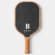 This stylish pickleball paddle features a classic black and white houndstooth pattern background with a black panel and solid black denim print covering the back. Moderm white typography name and initial on both sides. Choose white, tan (shown) or black. Easily change name and initial to make it yours using the Template provided. Use the Design Tool to edit font color, size, style-- and more. Option to add the Official USA Pickleball Certification printed on both sides under the personalization. Change color to white. See many other pickleball paddles in the Corporate Business Client Collection.