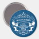 Wonderful blue and white personalized monogrammed cruise ship cabin stateroom door magnet. Perfect for the first time cruiser to the frequent travelling cruiser. Modern vintage design where you can add your name and the year that you started your cruise ship travels. Design also includes a cruise ship in the middle of the design.